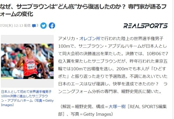 細野コーチがREALSPORTSの記事を書き、Yahooニュースにも転載されました(2022年7月20日)