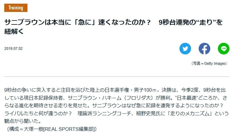 細野コーチがREALSPORTSの記事にコメントをして、Yahooニュースにも転載されました(2019年7月2日)