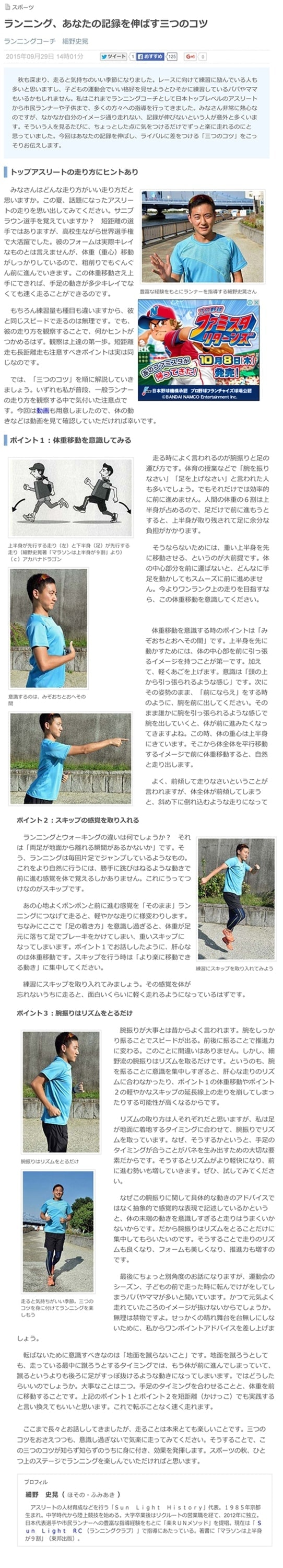 読売新聞オンライン(2015年9月29日)に細野コーチの記事が掲載されました。
